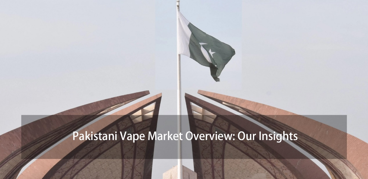 Image of the Pakistan Monument with the national flag, introducing an article titled 'Pakistani Vape Market Overview: Our Insights' exploring the vaping industry in Pakistan.
