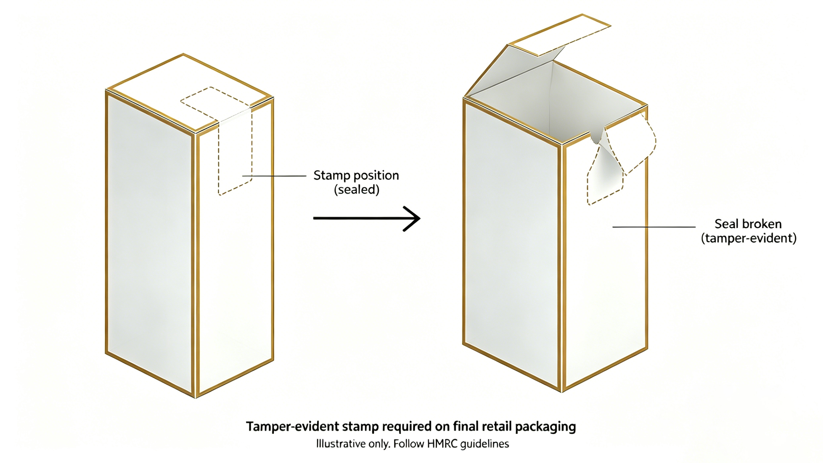 目前HMRC尚未发布统一粘贴位置模板,仅规定必须实现“开封即破坏”的结果。因此,税票问题本质上是包装结构设计问题,品牌需提前与包装供应商和工厂沟通,预留合适位置并确保合规效果。