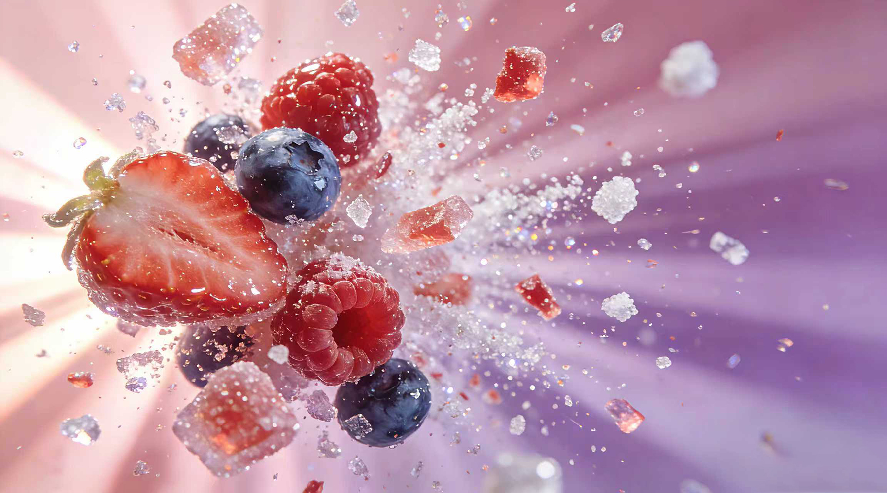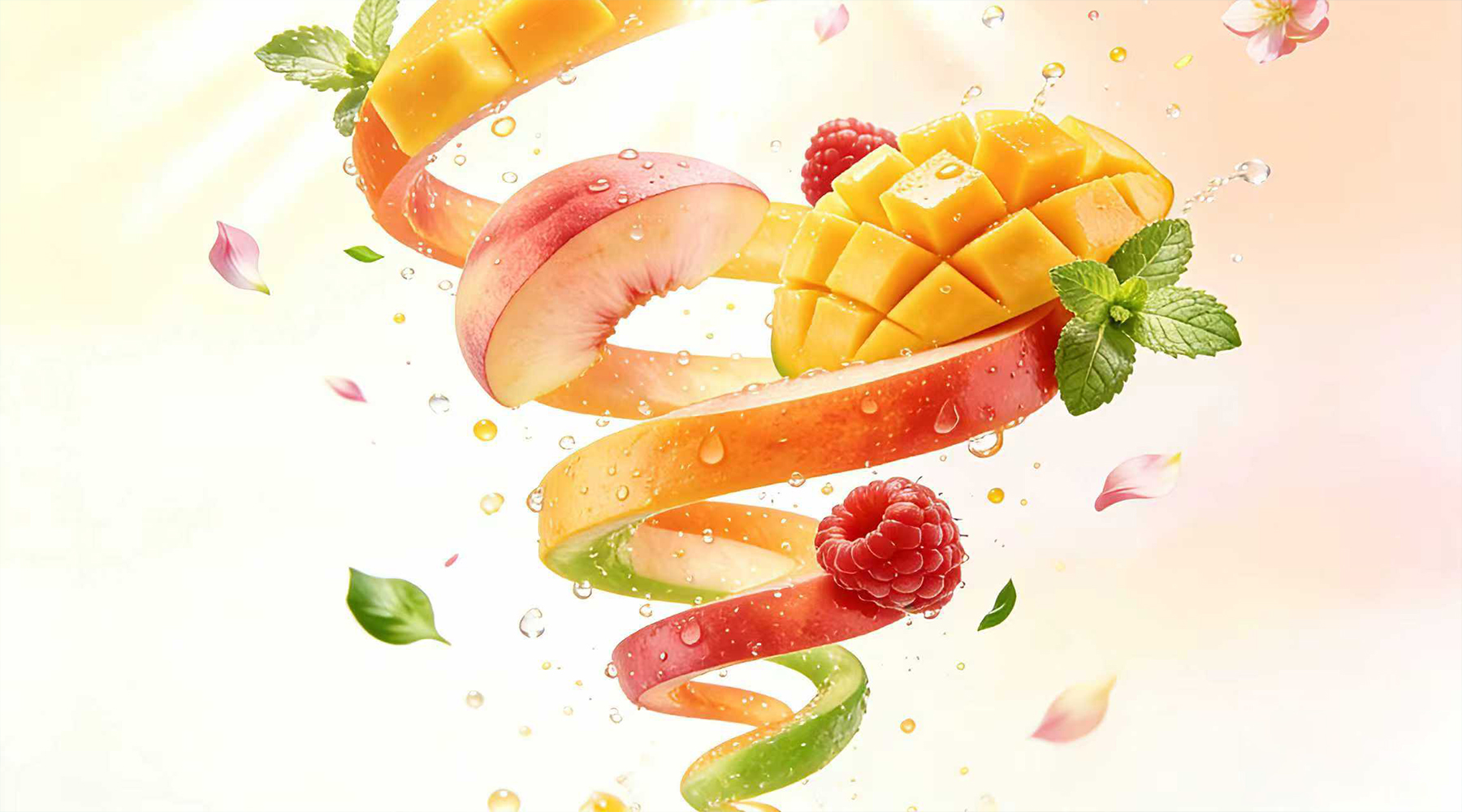 热带芒果的浓郁果肉香气率先爆发,甜度饱满且富有质感;紧接着水蜜桃的柔软清甜温柔铺开,带来多汁的口感;树莓的明亮酸感在中段跳跃而出,为整体注入活泼的层次感;最后由清冽薄荷利落收尾,让所有果味在冰感中完美凝聚。四重果味层层递进,每一口都充满惊喜,是美国消费者最爱的复杂多层风味代表。