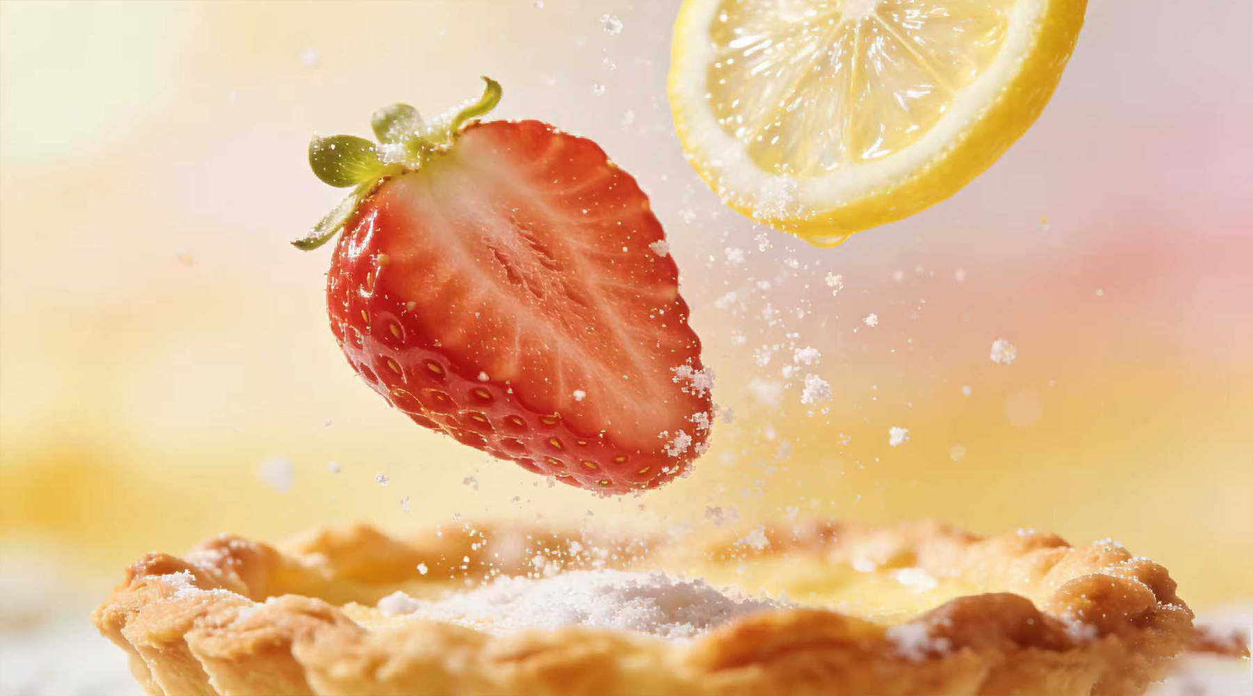 草莓的鲜甜在舌尖化开,汁水丰盈;柠檬的明亮酸爽随即登场,瞬间唤醒味蕾;尾调带来淡淡的黄油挞皮酥香,仿佛刚出炉的法式甜点。三层风味层层递进,从果香到酸甜再到烘焙香,完整还原精致甜点的口感,酸甜平衡,层次丰富。
